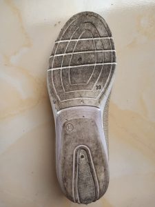 Di bagian dalam atau bawah telapak sepatu biasanya ada angka, misalnya 37, 39, atau 40.