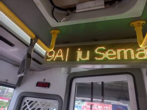 Misalnya tertulis “Rute 9A – menuju Semanggi” dan jam 08.05.
